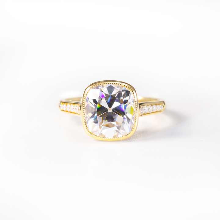 Nombre:Anillos de boda vintage de oro amarillo de 18 quilates con moissanita OEC de 4,5 quilates