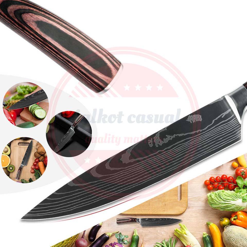 Juego de cuchillos de chef de cocina de Damasco hecho a mano personalizado, juego de cuchillos de cocina de primera calidad con estuche, 10 piezas