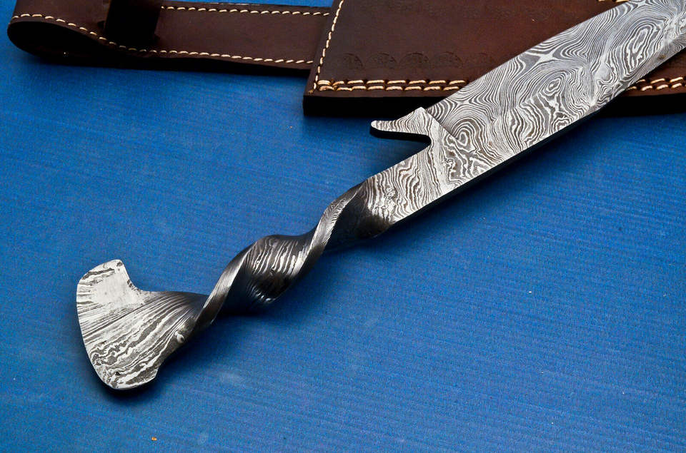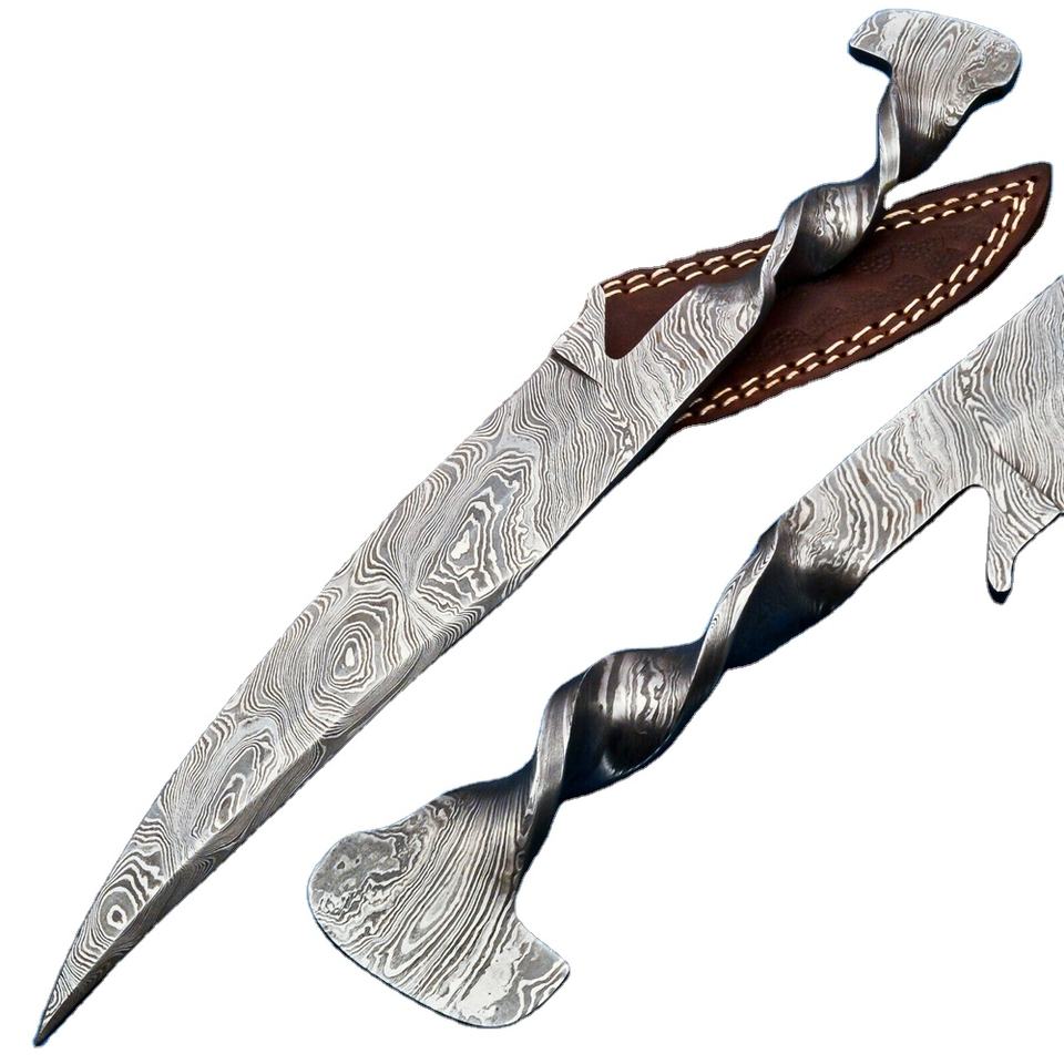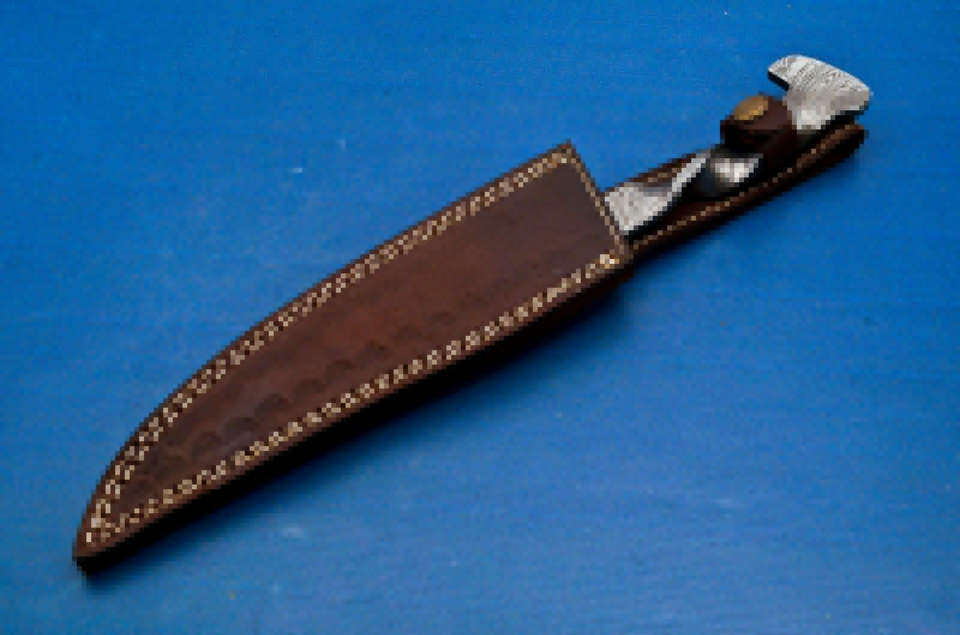 Cuchillo de cocina hecho a mano de Damasco, acero de Damasco, con Funda de cuero puro