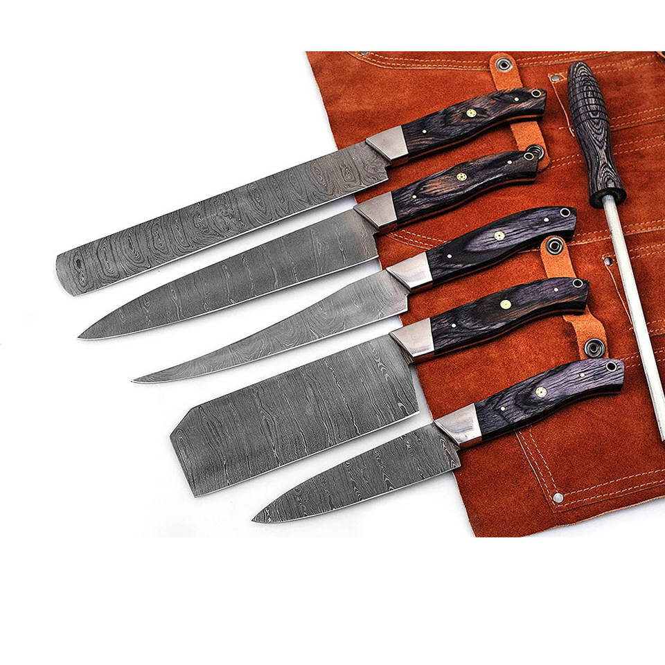Juego de Cuchillos de Cocina Profesionales de Acero Inoxidable Damasco Hechos a Mano, 6 Piezas, Diseño Personalizado, Mejor Precio