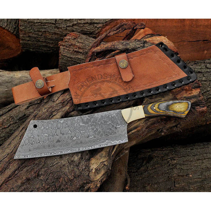 Handmade Damascus Steel Kitchen Cleaver Knife