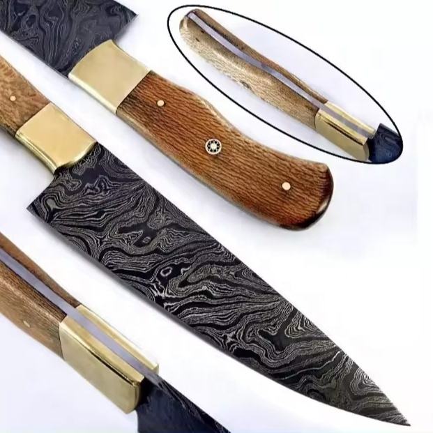 Cuchillo de chef de acero de Damasco hecho a mano personalizado con hoja afilada y mango de madera Pakka para uso diario en la cocina