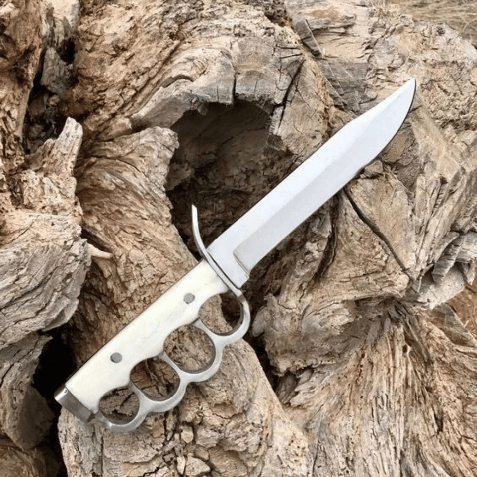 Cuchillo Bowie de Hoja Fija de Acero de Damasco Hecho a Mano con Acabado Pulido Espejo y Mango de Hueso, Cuchillo de Caza para Exteriores OEM