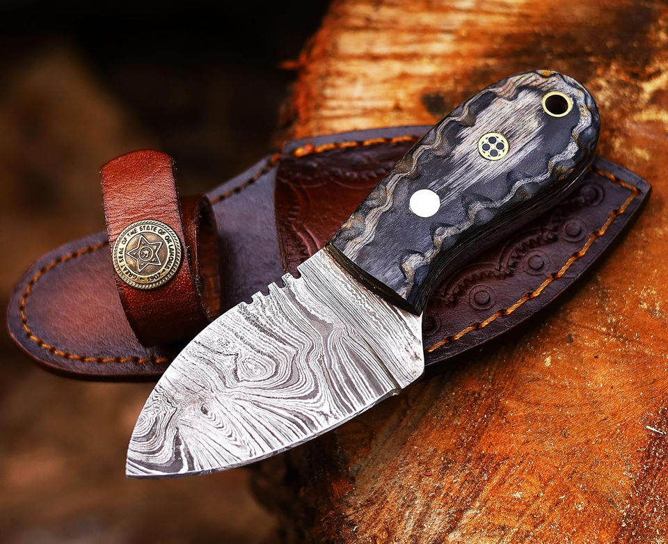Cuchillo de Caza de Hoja Fija de Acero de Damasco Hecho a Mano, Cuchillo de Caza de Damasco Hecho a Mano de Alta Calidad