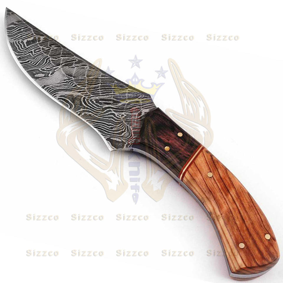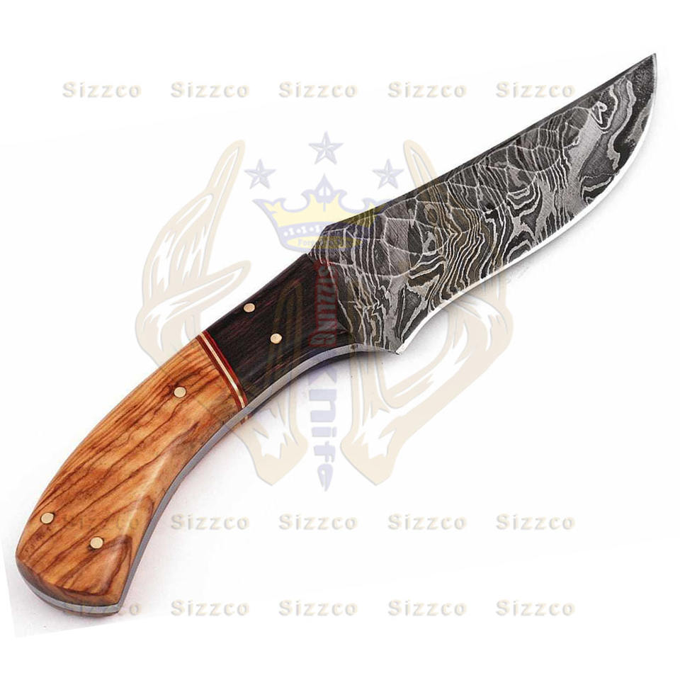Cuchillo desollador de hoja fija de acero de Damasco hecho a mano personalizado, mango de madera dura de olivo, compatible con OEM para caza, Camping, uso general