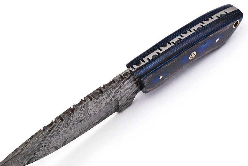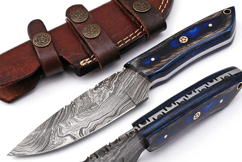 Cuchillo de Hoja Fija de Acero de Damasco Hecho a Mano Personalizado Zafar Traders ZR1507 OEM con Mango de Madera, Hueso y Cuerno para Caza, Aire Libre y Camping
