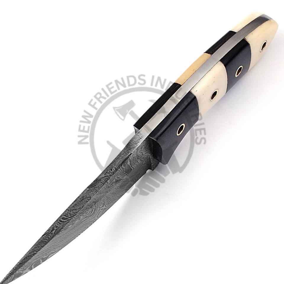 Cuchillo de Caza Hecho a Mano con Acero de Damasco, Cuchillo Multifuncional para Exteriores con Mango de Cuerno de Búfalo/Hueso de Camello