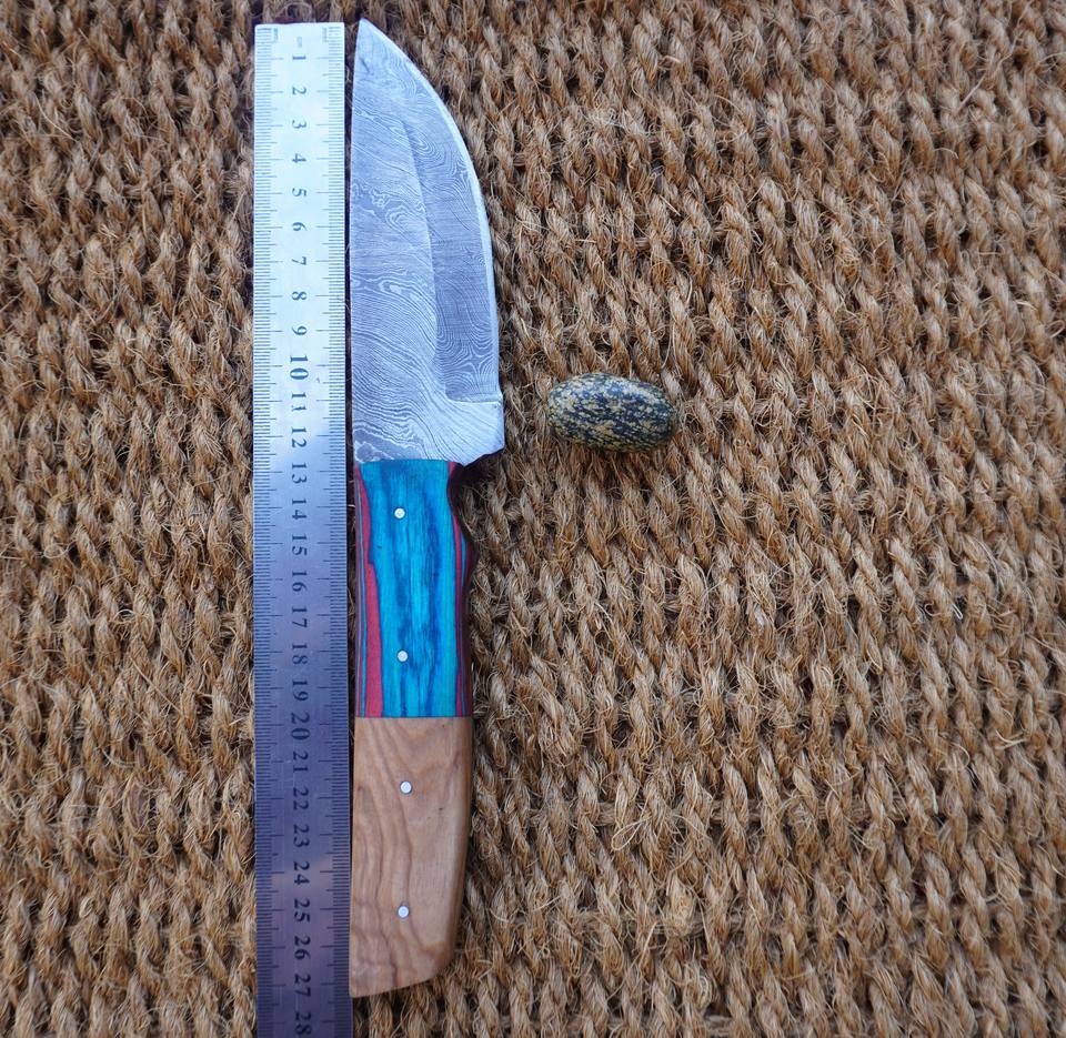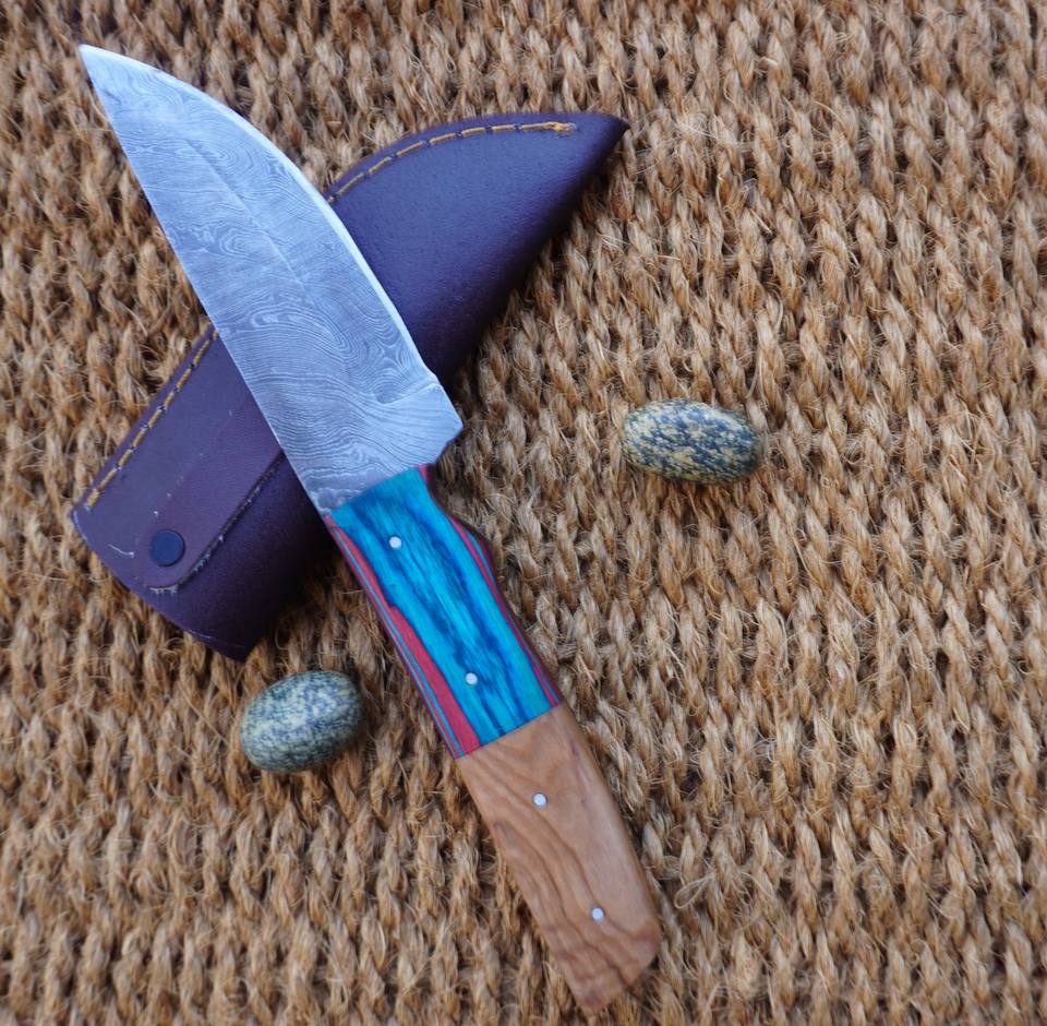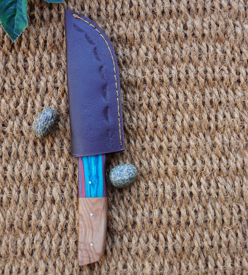 Juego de Cuchillos de Caza de Acero al Carbono Hechos a Mano con Mango de Madera Híbrida, Funda de Cuero, Diseño Ambidiestro y Construcción Duradera