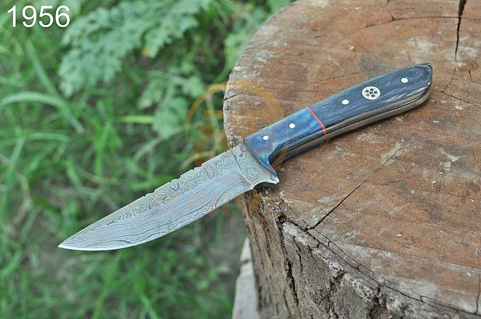 Cuchillo de Caza y Camping de Acero de Damasco Hecho a Mano con Mango de Madera Pukka, Alta Dureza, OEM, Cuchillo de Supervivencia para Exteriores