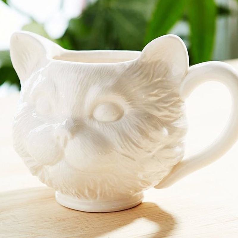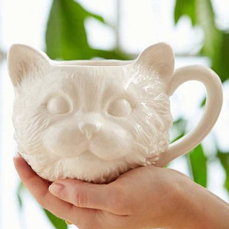 Ustom-vasos de porcelana hechos a mano con diseño de gatito, Taza de cerámica oficial con relieve de 3D, taza de té y café con cabeza de gato persa