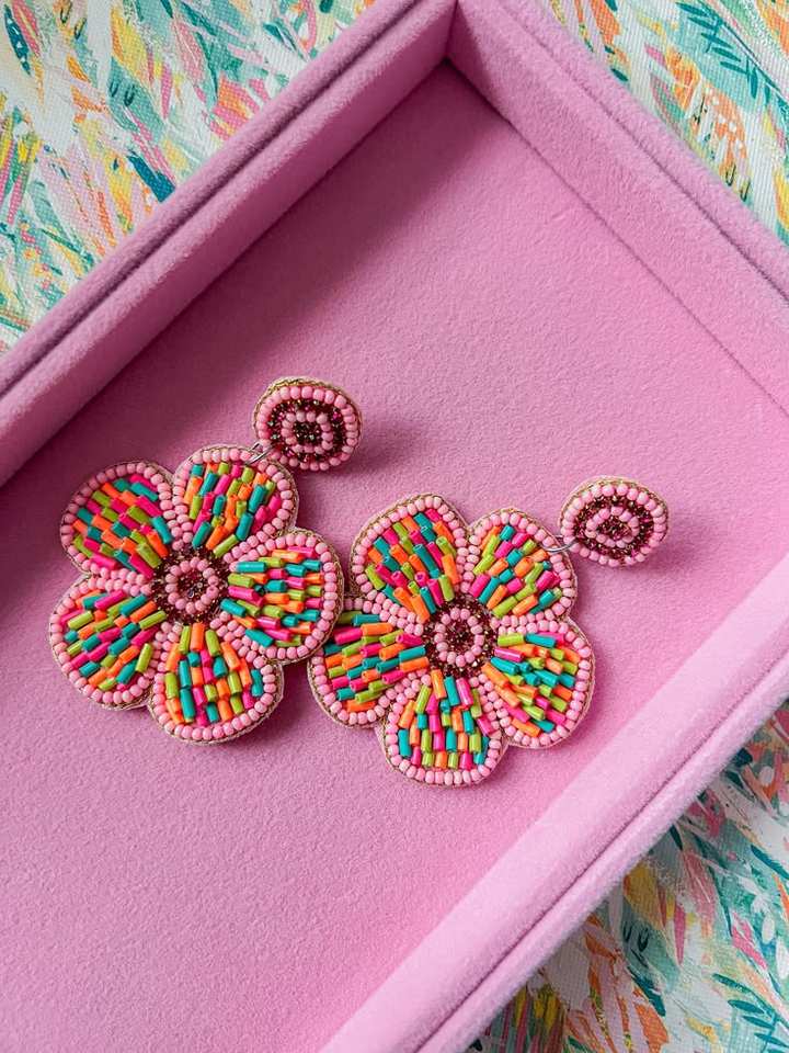 Pendientes de Aro Hechos a Mano con Bordado y Cuentas, Ideales para Fiestas de Videojuegos, Eventos Festivos, Regalos, Joyería Decorativa de Moda