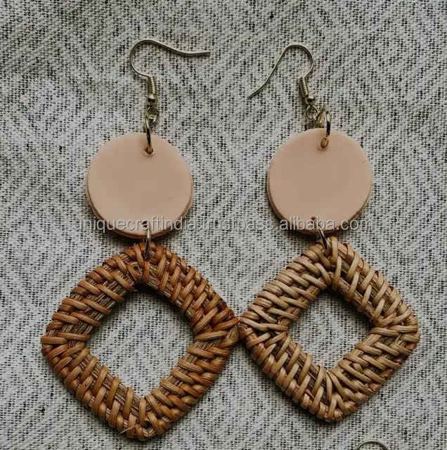 Pendientes de Ratán Hechos a Mano con Diseño Irregular para Bodas y Fiestas, por Unique Craft India