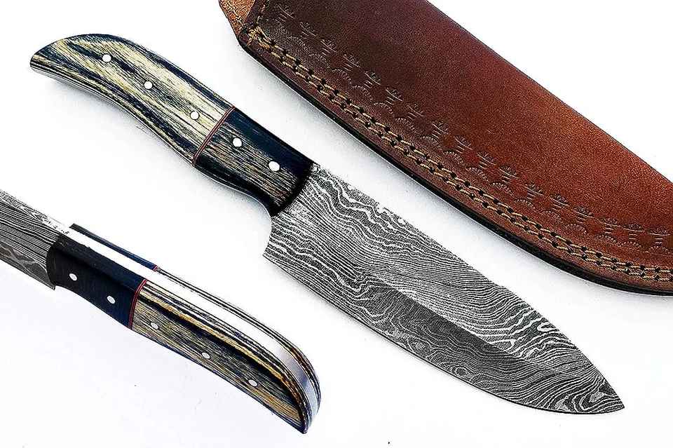 Cuchillo de Chef Japonés Hecho a Mano con Acero Damasco Forjado, Mango de Madera Pakka con Funda de Cuero
