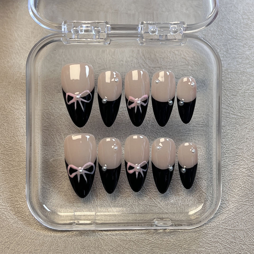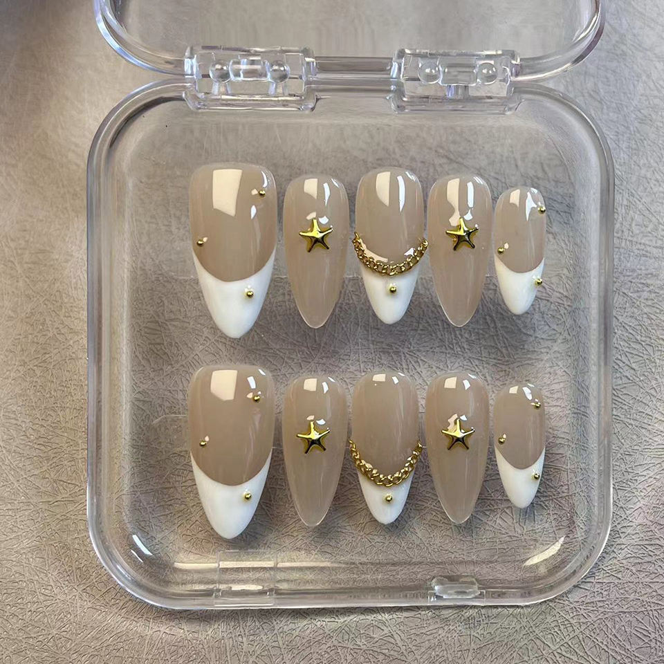 Uñas Postizas Reutilizables Hechas a Mano con Punta Francesa Personalizadas, Uñas Artificiales al Por Mayor con Caja de Embalaje