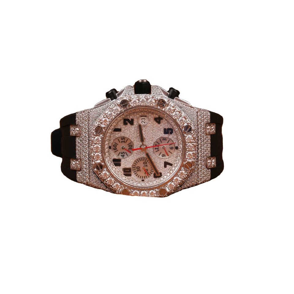 Reloj de Pulsera Personalizado Hecho a Mano con Esfera Blanca Semi-Cristalizada, Diamantes Moissanite VVS, Digital, Totalmente Personalizable, Unisex, Acero Inoxidable, Estilo Antiguo
