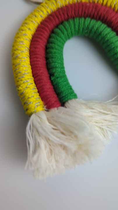 Llavero personalizado hecho a mano macramé arcoíris diseño único por JNC macramé
