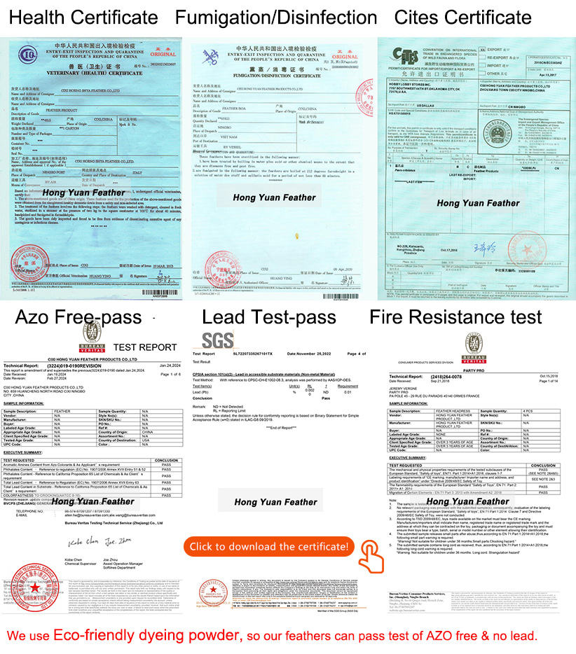 Todas las plumas son tratadas bajo:esterilización a alta temperatura y fumigación profesional