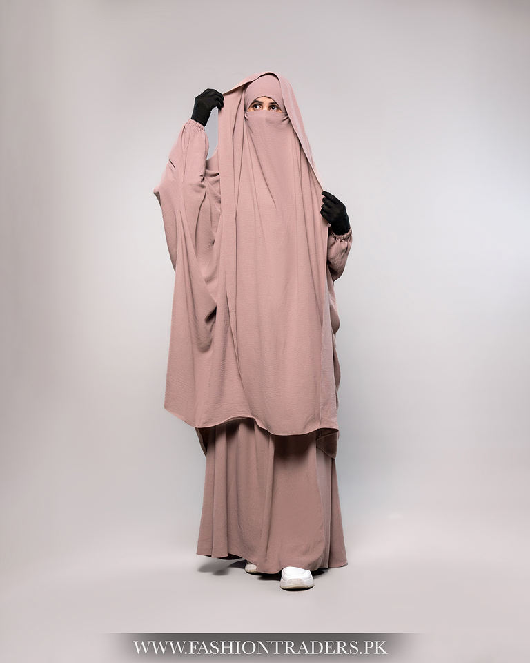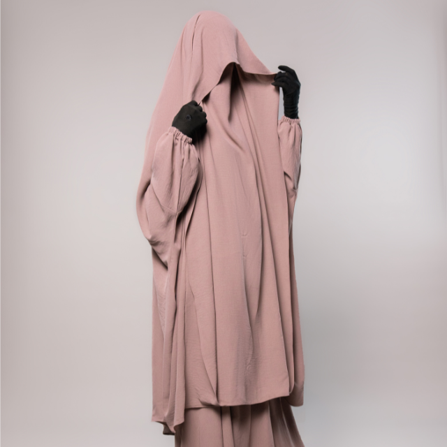 Jilbab de dos piezas con mangas elásticas y solapa.