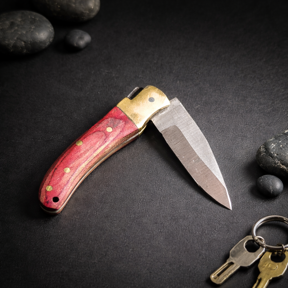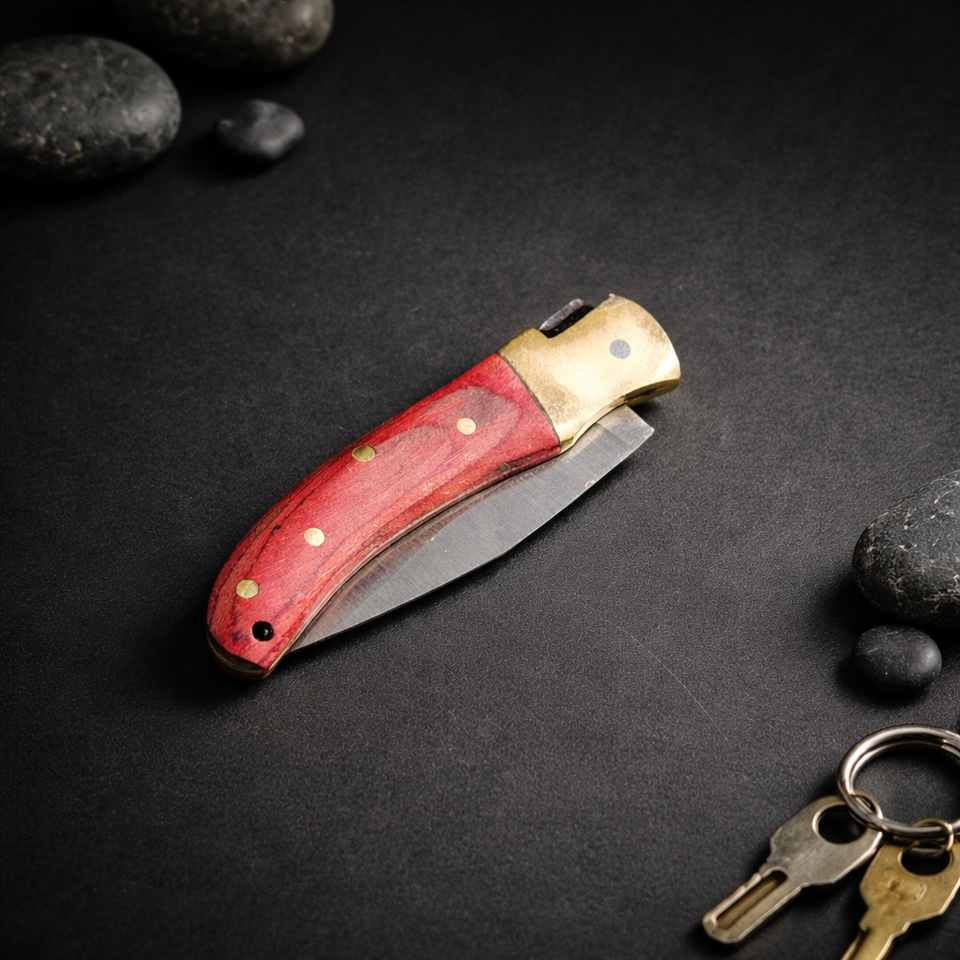 Navaja de bolsillo personalizada hecha a mano de acero inoxidable con mango de madera, mini navaja plegable para llavero, herramienta EDC para camping, 4 en 1, venta al por mayor a granel
