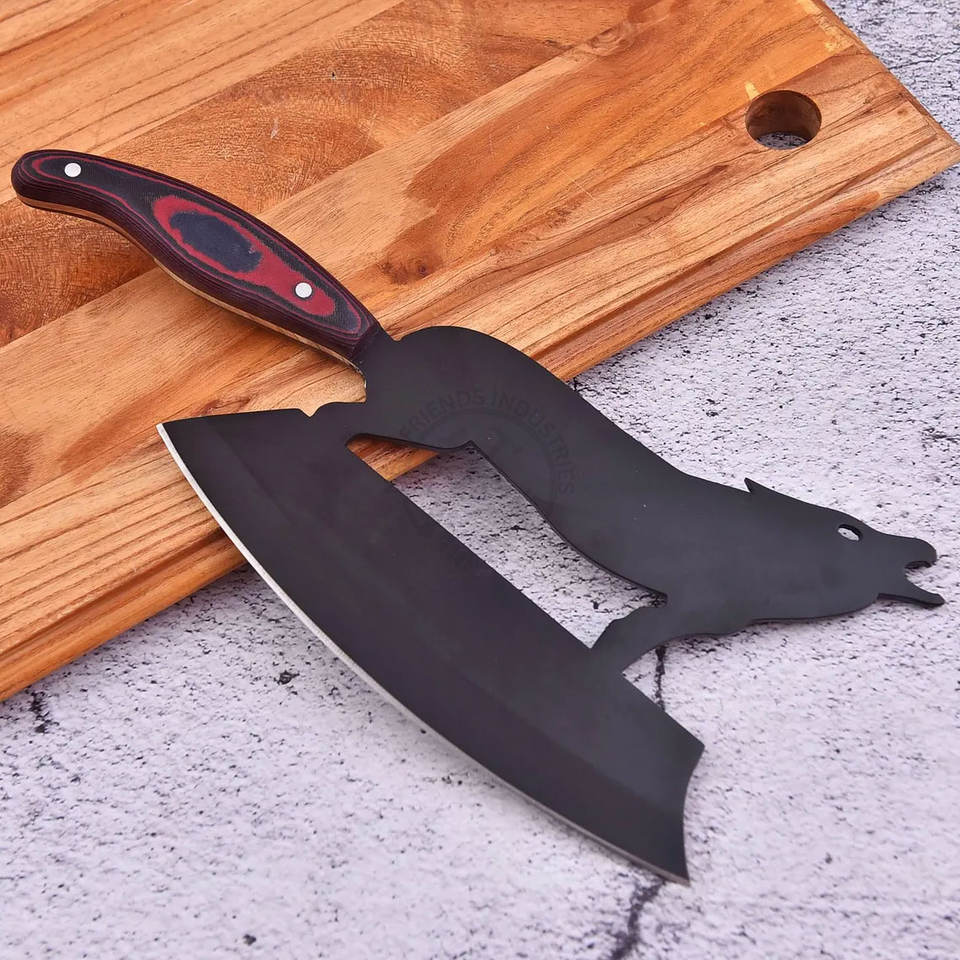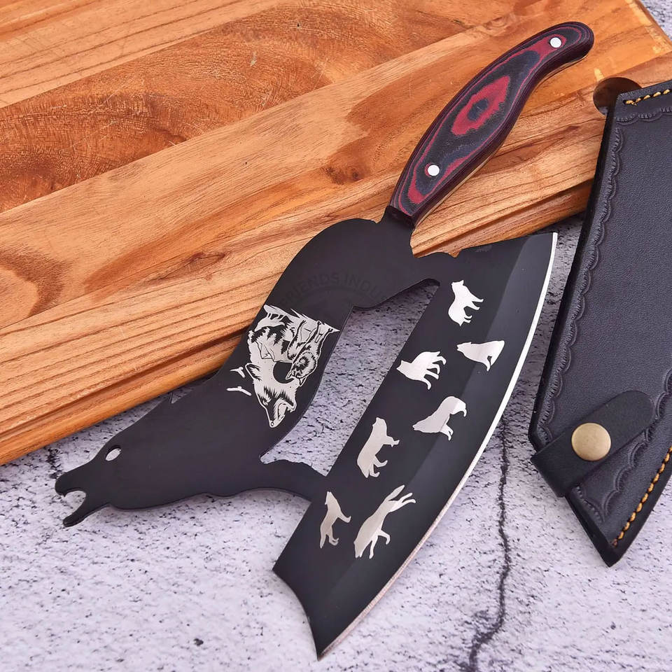 Cuchillo de Carnicero Hecho a Mano, Único y Personalizado, con Funda de Cuero, Hoja de Acero D2 de 7.5 Pulgadas, Cuchillo de Cocina para Chef, Ambidiestro, con Revestimiento G10