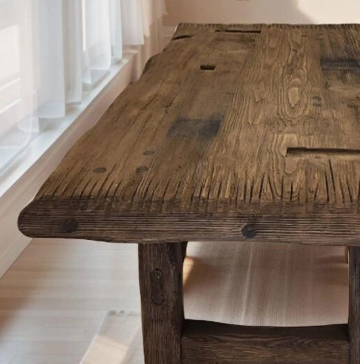 Mesa de Comedor de Madera Hecha a Mano en Estilo Rústico de Casa de Campo, Mesa de Madera con Mango Reciclado para Muebles de Comedor