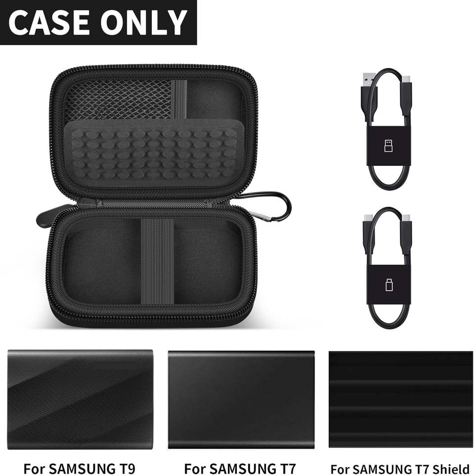 Estuche Rígido de Viaje Personalizado para Samsung T7 Shield/ T9 / T7 Touch, Disco Duro Portátil SSD USB 3.2 de 1 TB, 2 TB, 500 GB, Bolsa Protectora