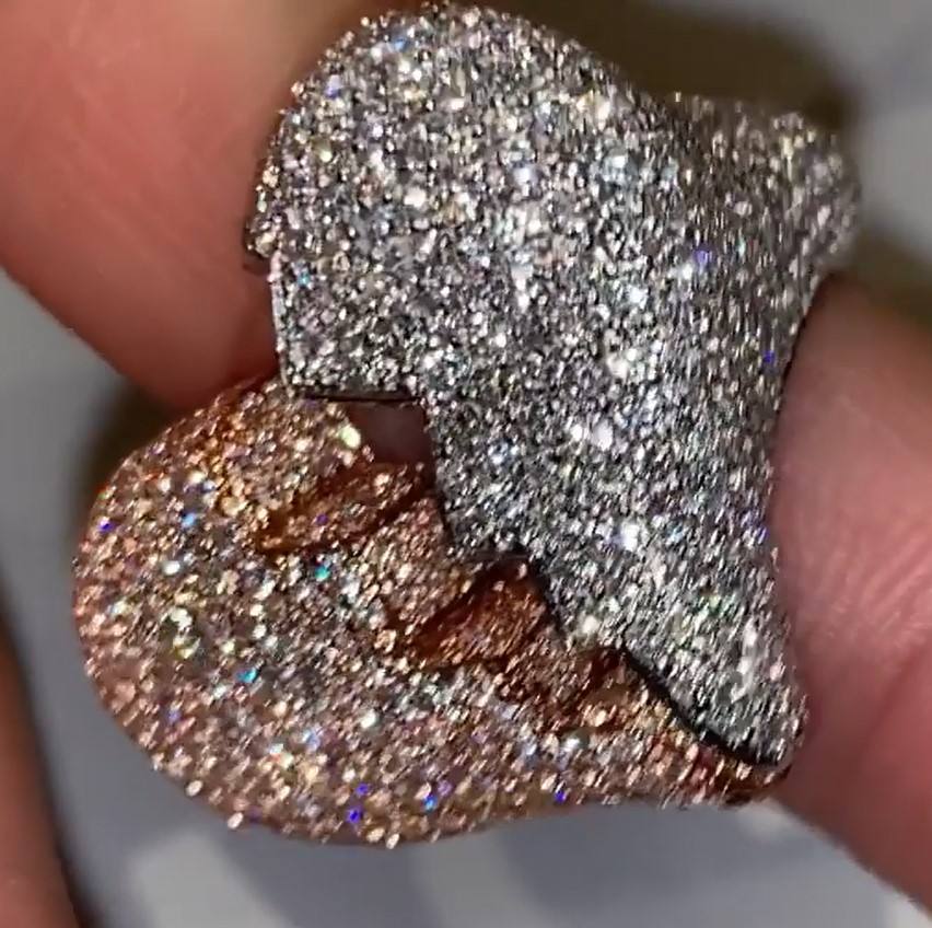 Anillo de Corazón Personalizado, Joyería de Moda para Raperos, Plata de Ley 925, Joyería Hip Hop, Diamante Moissanita VVS, Anillo de Corazón Roto con Incrustaciones de Diamantes