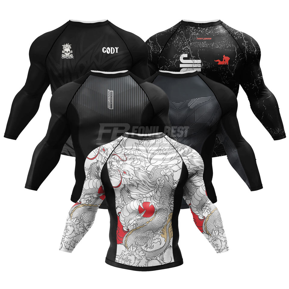 Camiseta de compresión de manga larga para MMA con logo frontal, transpirable, ecológica, de secado rápido, con estampado personalizado por transferencia térmica, al por mayor