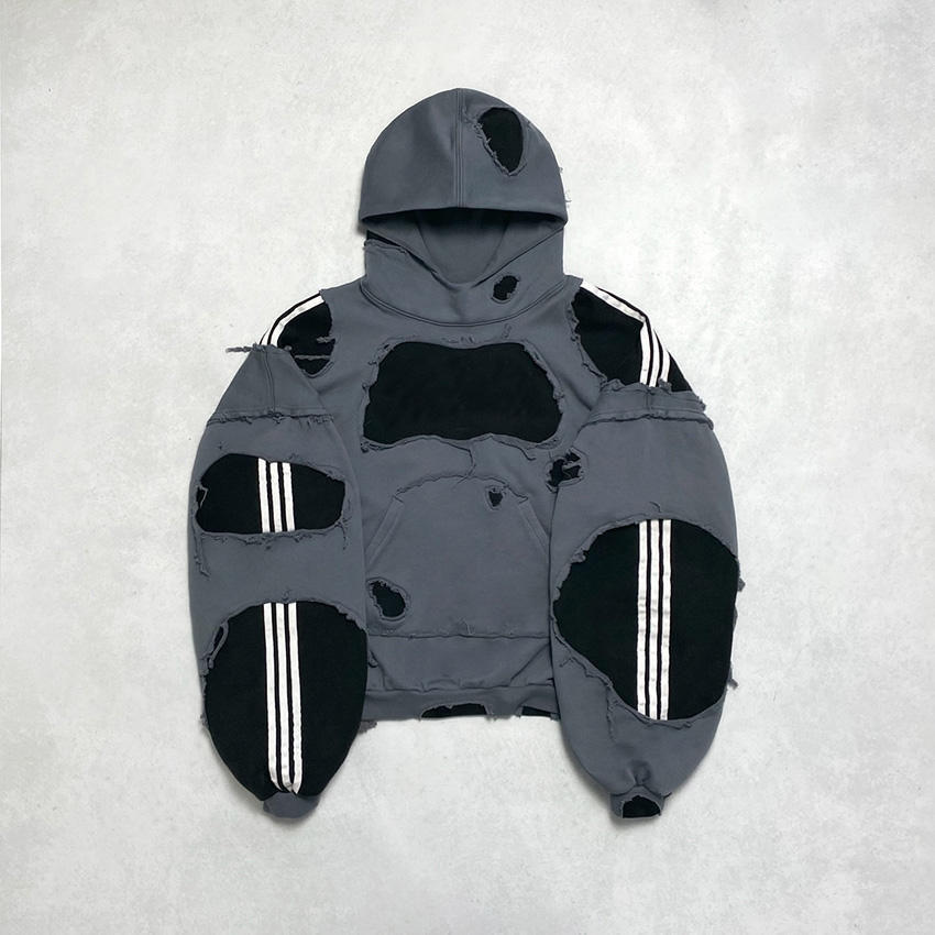 Sudadera con capucha de bolsillo de contraste pesado personalizada bloque de doble color 3D aguja-patchwork parche bordado apliques sudaderas con capucha para hombre