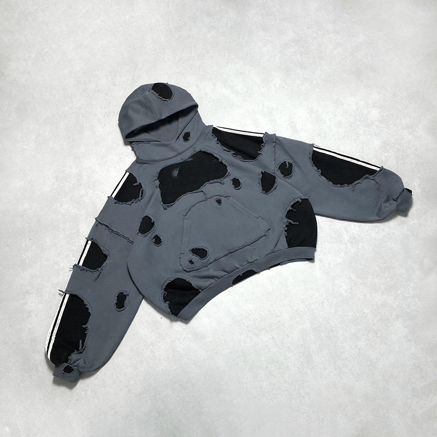 Sudadera con capucha de bolsillo de contraste pesado personalizada bloque de doble color 3D aguja-patchwork parche bordado apliques sudaderas con capucha para hombre