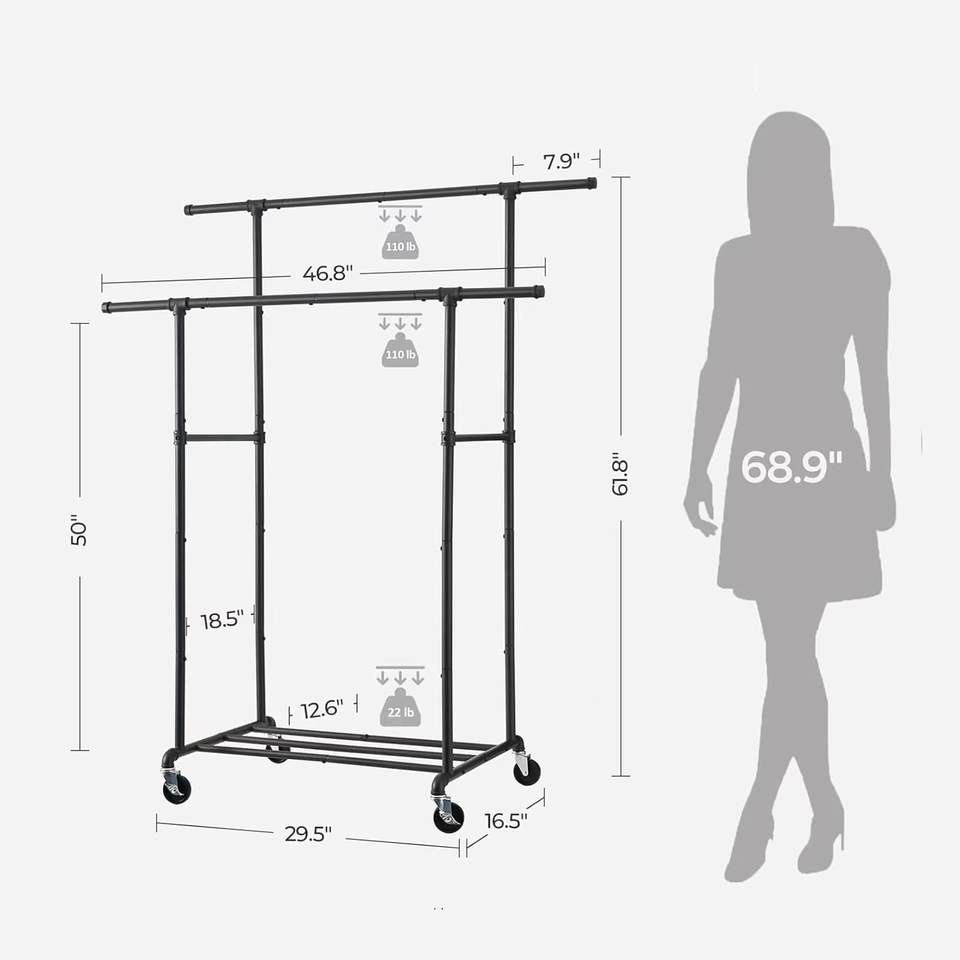 Colgador de ropa de Metal de doble barra resistente personalizado, organizador con ruedas, armario, dormitorio, estante para ropa, desmontable, uso en la sala de estar
