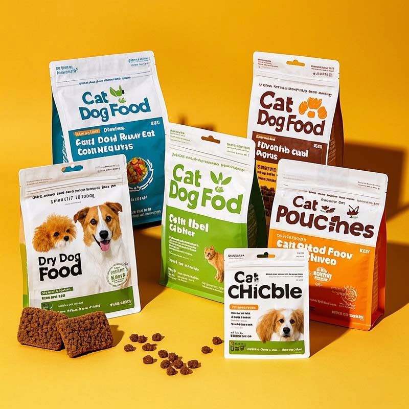 Bolsa de pie con cremallera resellable de fondo plano resistente personalizada para alimentos para mascotas, bolsa de plástico para almacenamiento de golosinas para perros a granel