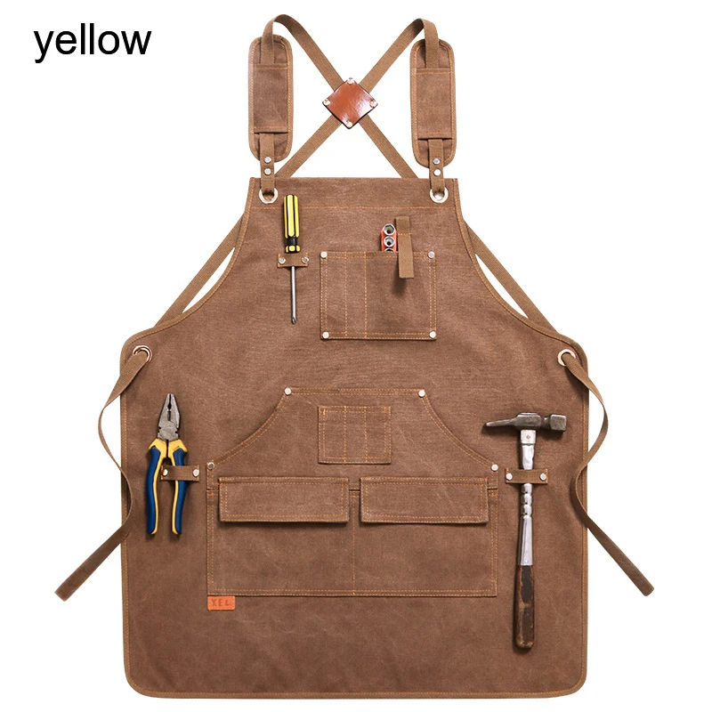 Delantal de herramientas con bolsillos personalizados a prueba de aceite para uso mecánico de automóviles para carpinteros de lona encerada de alta resistencia