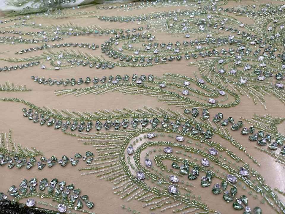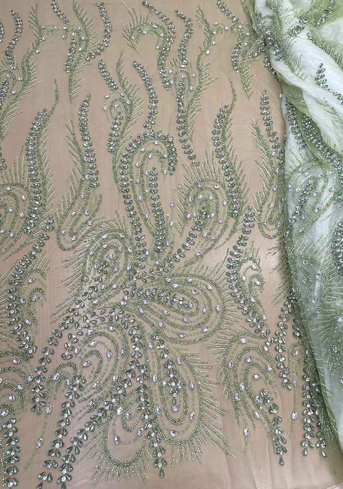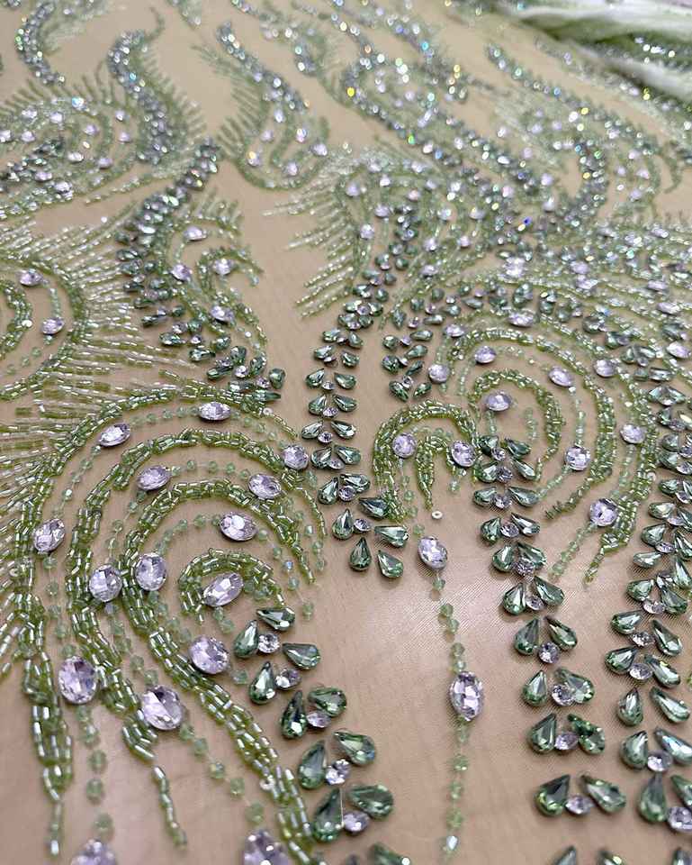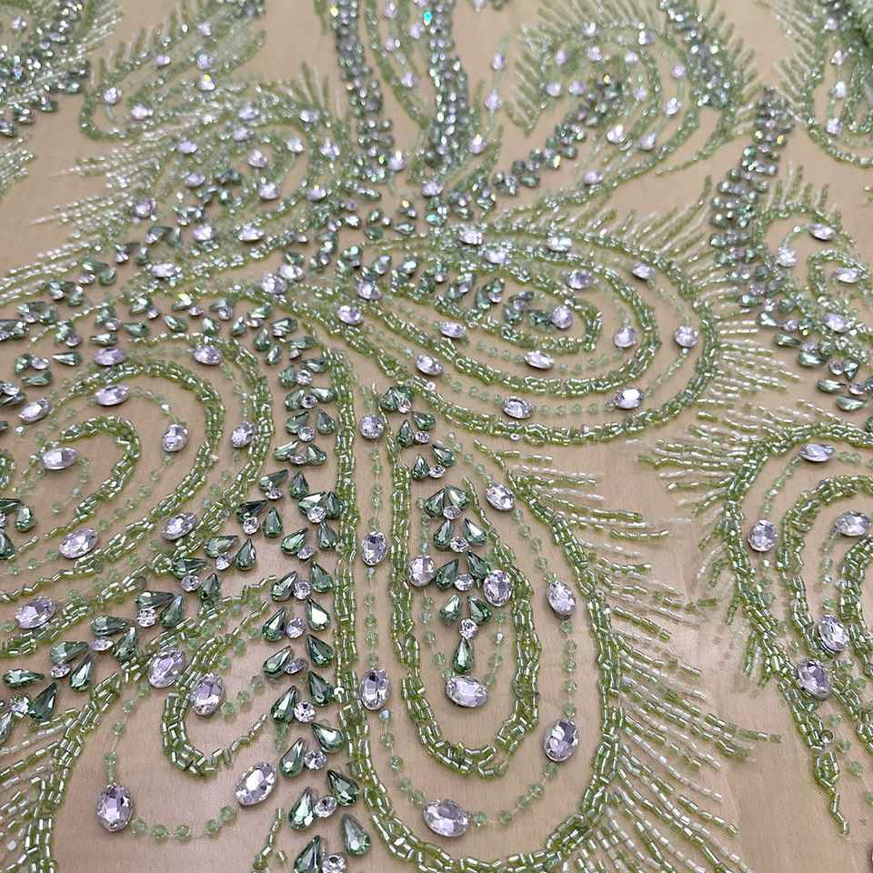 Tela de malla con cuentas y pedrería de trabajo manual personalizado, color rojo vino, para diseñadores de marcas de moda