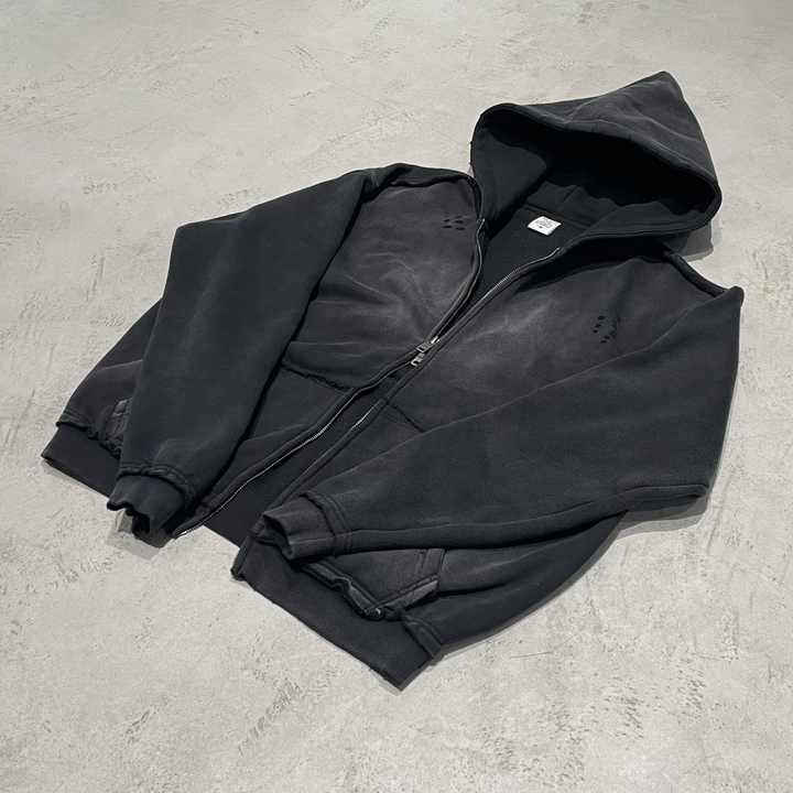 Sudadera Personalizada con Doble Cremallera de Alto Gramaje Color Negro Estilo Vintage Desgastado Urbano Lavado al Ácido 400GSM para Hombre