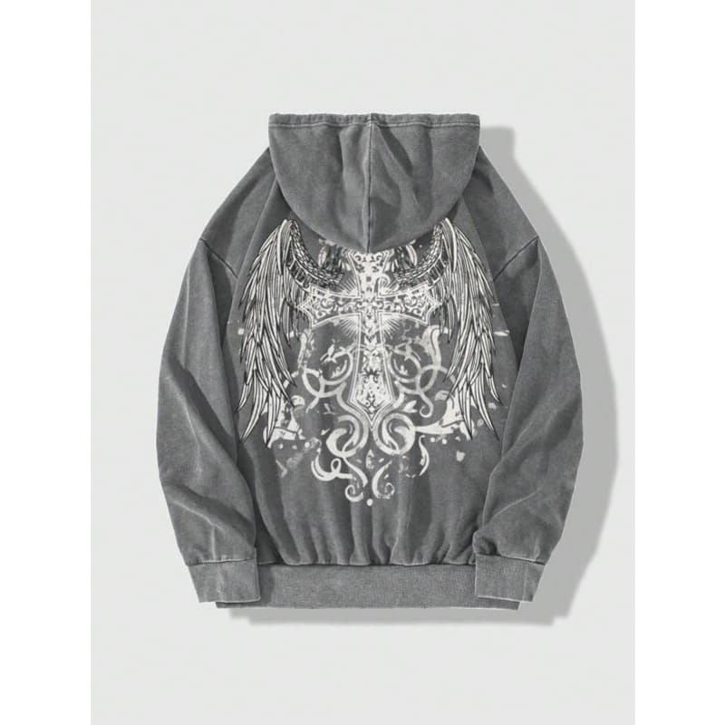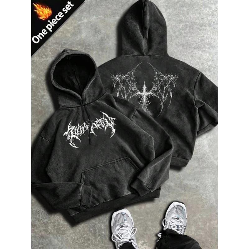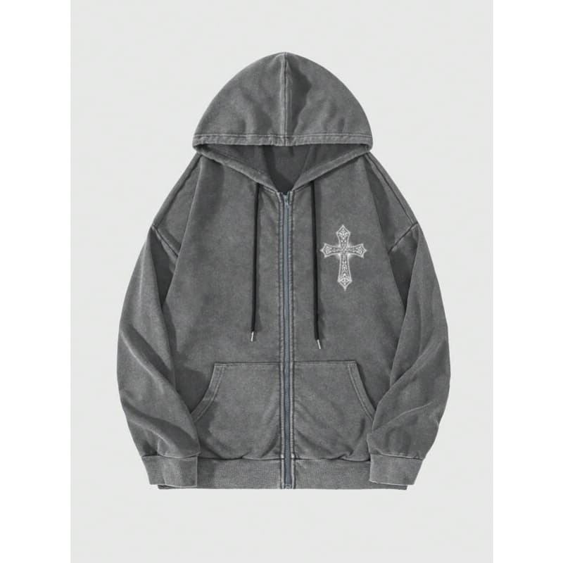 Sudadera con capucha personalizada de doble cremallera, negra, estilo vintage, desgastada, streetwear, lavado ácido, 400GSM, sudaderas con capucha lisas para hombre