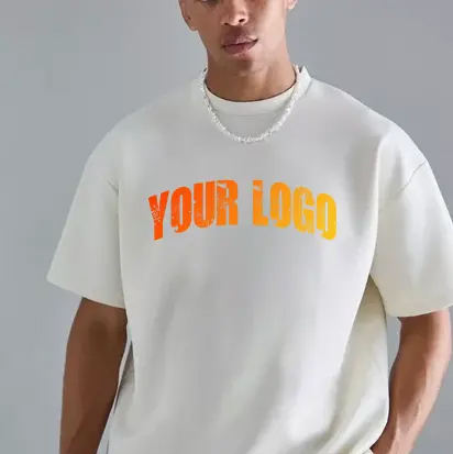 Camisetas de Hip Hop de peso pesado personalizadas de algodón 100% para hombres, cuello falso holgado de gran tamaño, talla grande, blanco con diseño en blanco