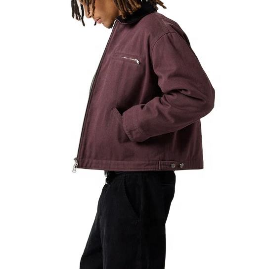 Chaqueta de Trabajo Vintage de Mezclilla Gruesa Personalizada con Bordado Regular Teñido en Frío para Hombre