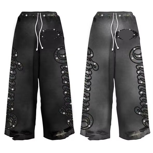 Conjunto de Sudadera con Capucha y Pantalones Deportivos Anchos con Lavado Ácido Personalizados para Hombre, Ropa Deportiva Bordada, Chándal con Pedrería, Sudadera Corta
