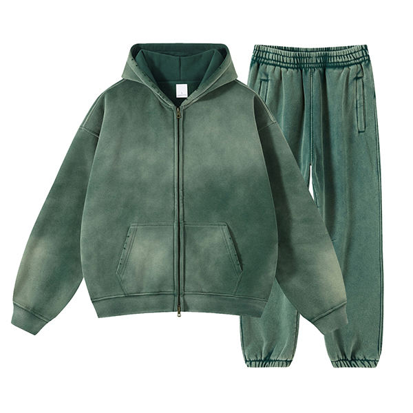 Conjunto de lavado ácido pesado personalizado, traje de sudor lavado con ácido de alta calidad, conjunto de pantalones de chándal y Sudadera con capucha, chándales Vintage lavados para hombres
