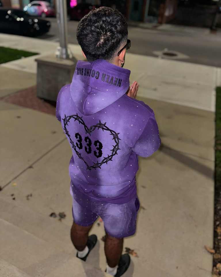 Sudadera con capucha desgastada de peso pesado personalizada con diamantes de imitación recortada Boxy Raw Hem lavado con ácido y pantalones de chándal Acampanados para hombre