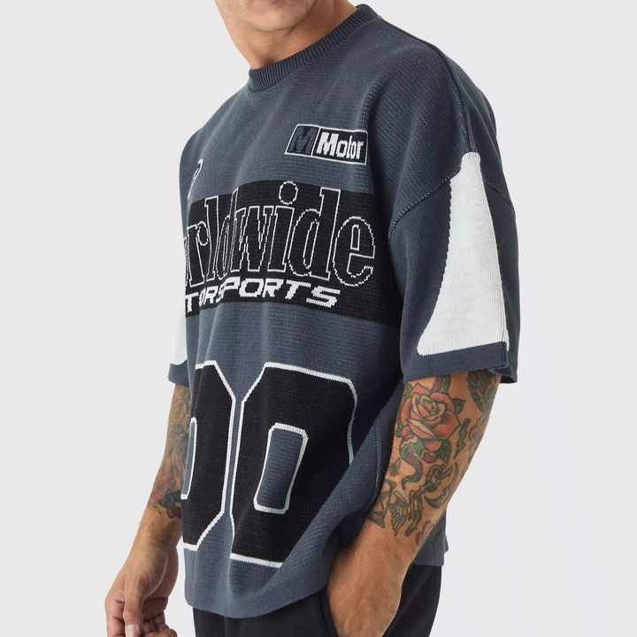 Camiseta Oversize Personalizada de Hombro Caído y Tejido Grueso para Streetwear, Azul Liso, con Etiqueta Privada, Impresión DTG DTF, Personalizable