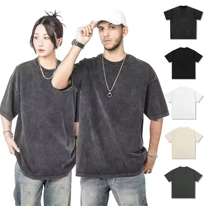 Personalizado de peso pesado O cuello ropa de verano de talla grande Vintage Sun Fade Tees Oversize Boxy bordado liso camiseta para hombres corto