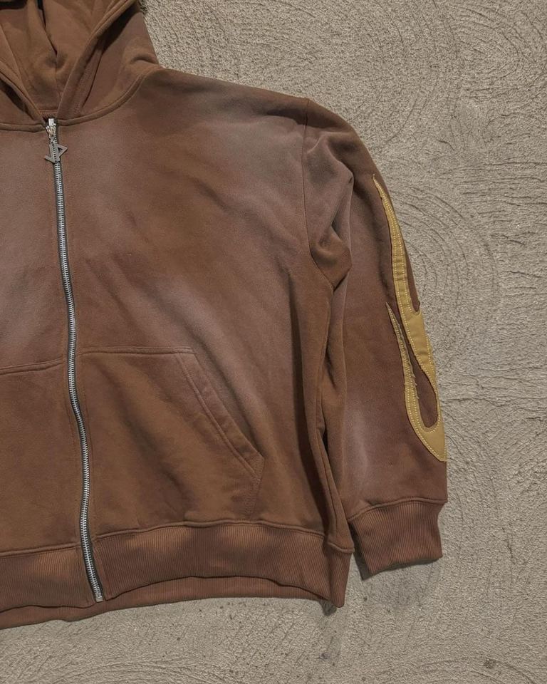Conjunto de sudadera con capucha y pantalones de chándal Acampanados para hombre lavado con ácido Zipup recortado con estampado completo Boxy desgastado de peso pesado personalizado
