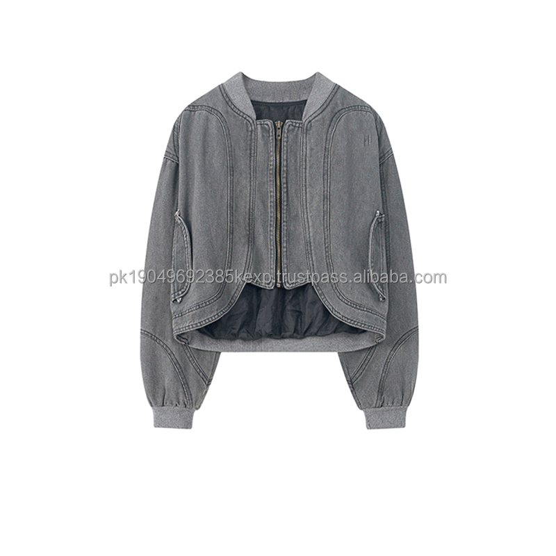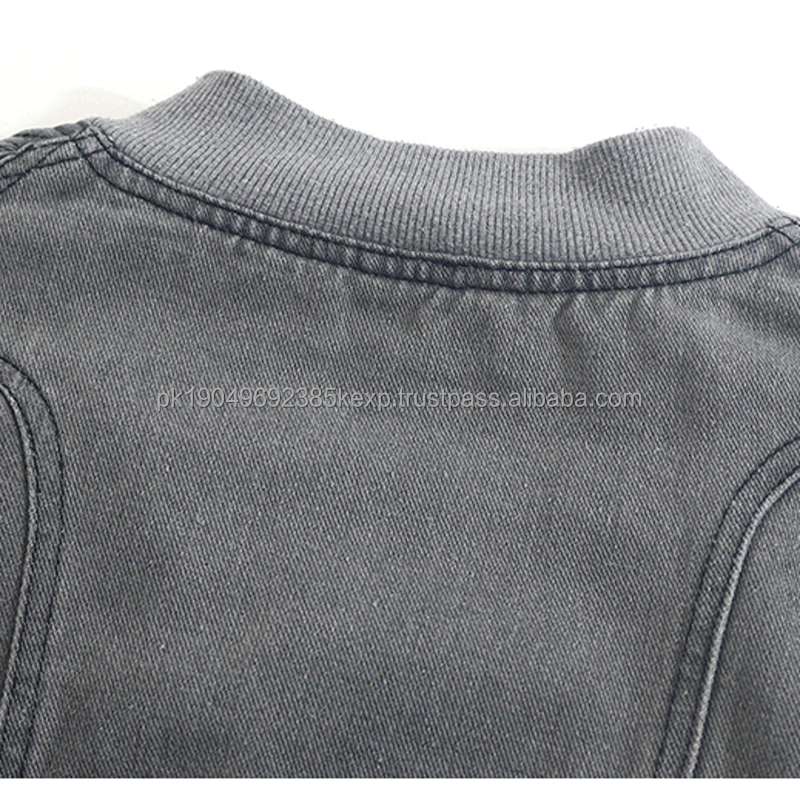 Chaqueta vaquera de algodón 100% lavada con ácido Vintage con parte inferior en U pesada personalizada, chaqueta recortada con cremallera desgastada bordada para invierno