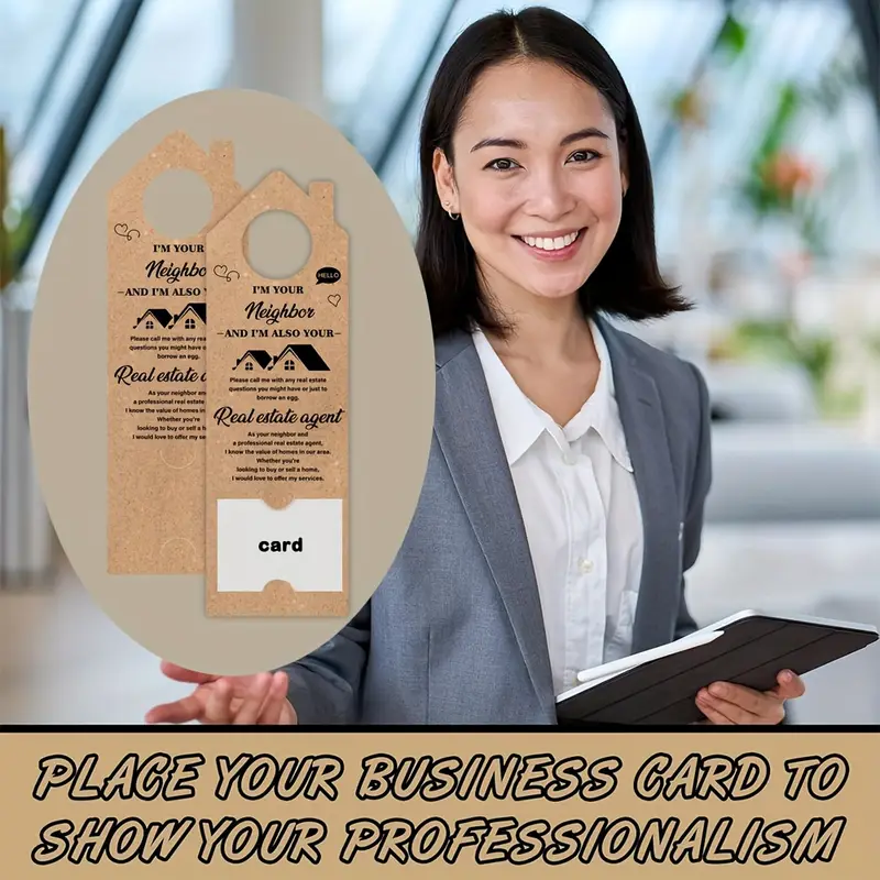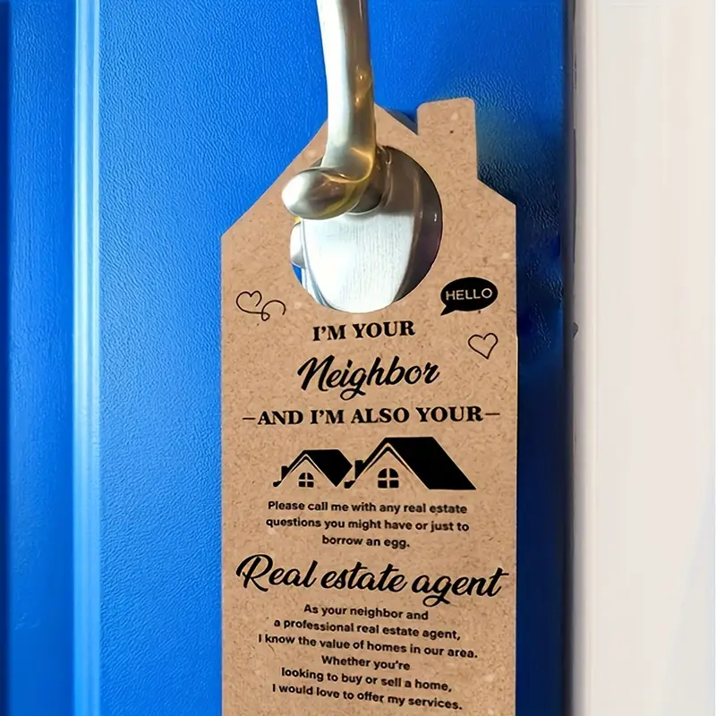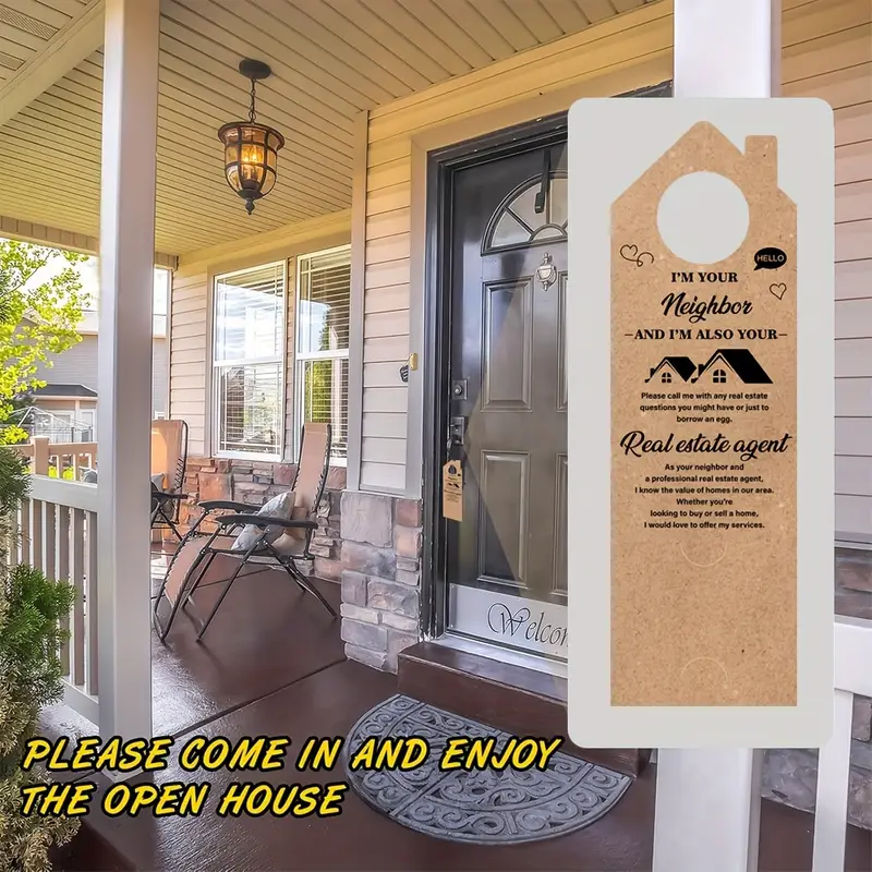 Colgador de puerta personalizado Hey Neighbor Real Estate Agent Tarjetas de visita Suministros de Casa Abierta para oficina en casa con estilo