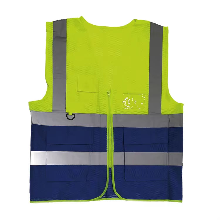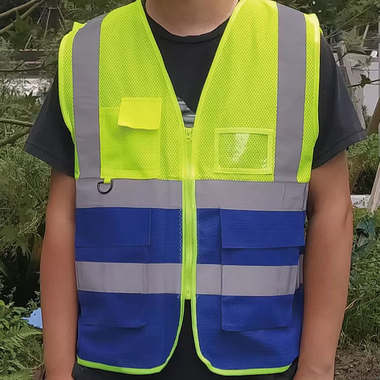 Chaleco reflectante de alta visibilidad personalizado con bolsillos para trabajo de seguridad, tono de poliéster