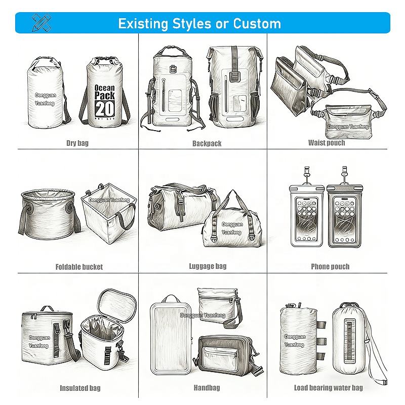 Custom High 500D PVC impermeable Roll Top Duffle Bag Travel Camping Senderismo Mochila grande