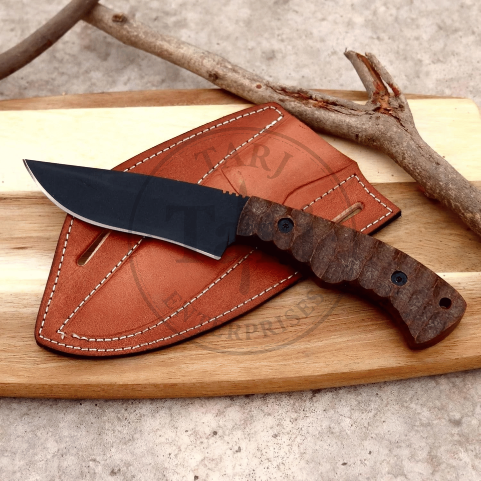 Material:Cuchillo de caza de acero recubierto de negro de alta calidad.