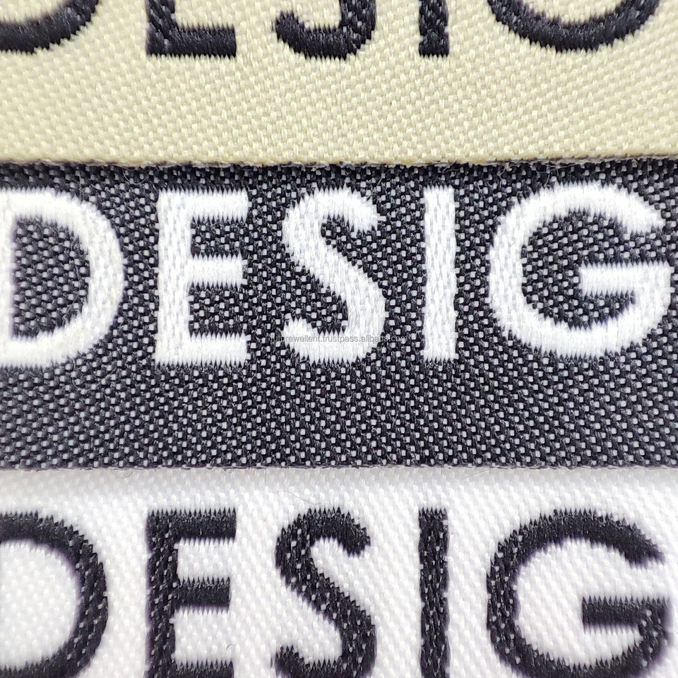 Etiquetas tejidas de alta densidad respetuosas con el medio ambiente personalizadas para bolsas de ropa Etiquetas con logotipo de cuello de ropa plegado sostenible Lámina plateada